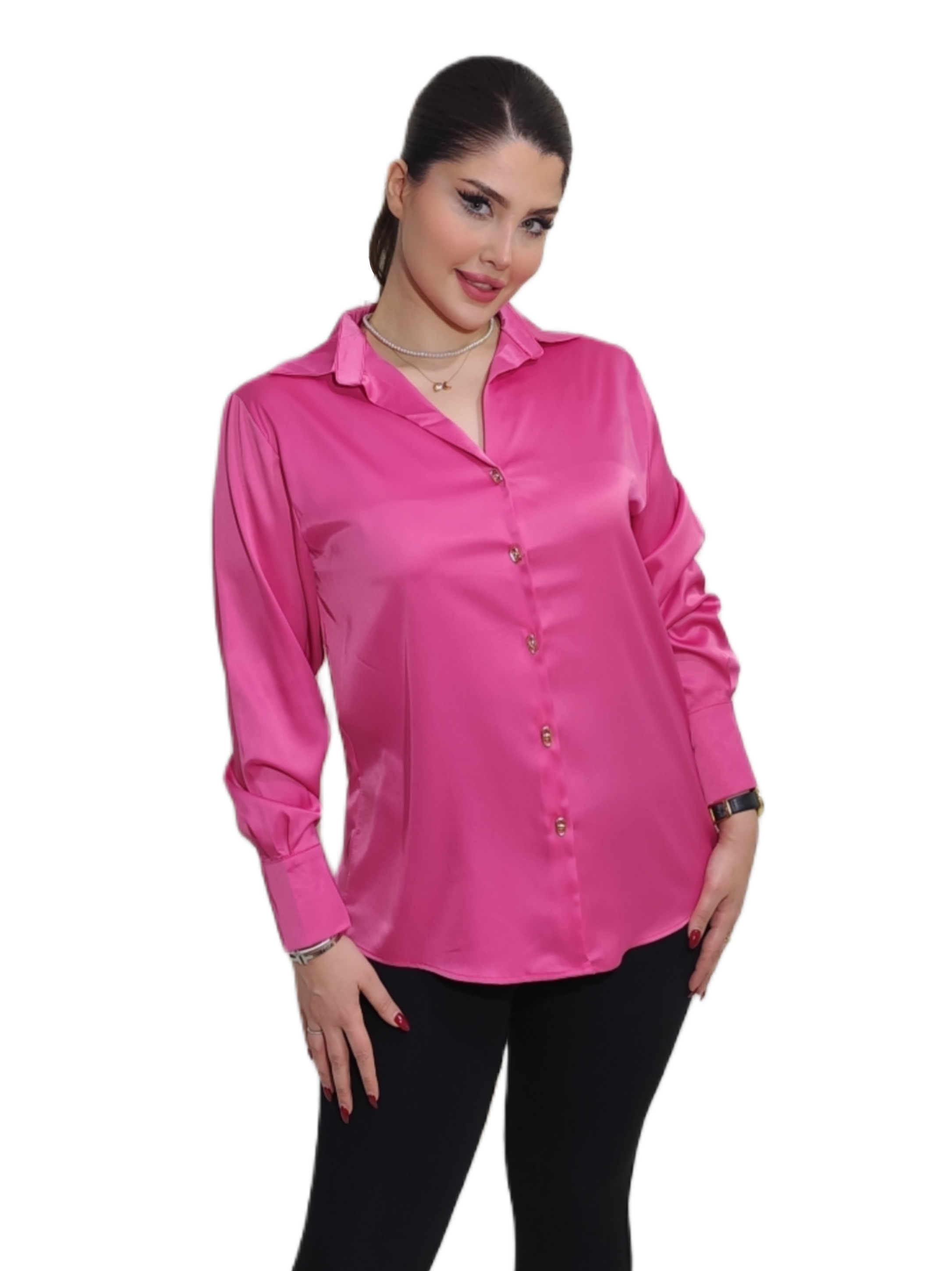 شومیز زنانه مجلسی شیک ساتن سرخابی آسیتن بلند برند MODAMOON۲٬۴۰۰٬۰۰۰ تومان
