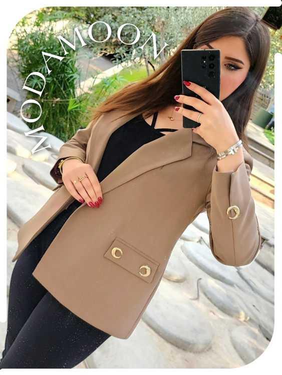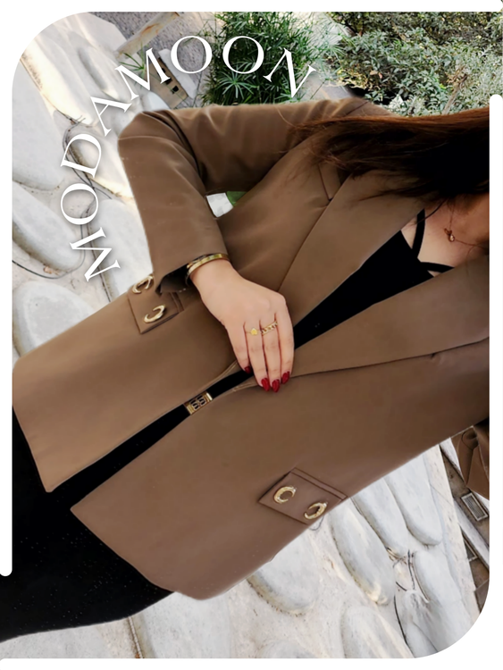 کت کوتاه پاییزه زنانه برند MODAMOON با رنگ بندی خاص و طراحی لوکس، ترکیبی از ظرافت و استایل مدرن است.