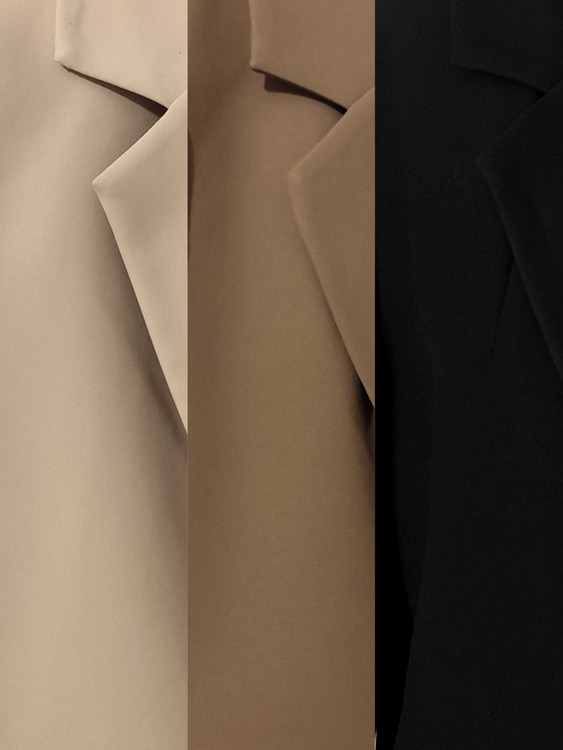 جنس کرپ باکیفیت آن، فرمی ایستاده و خوشدوخت ایجاد کرده که برای فصل پاییز و زمستان ایدهآل است.