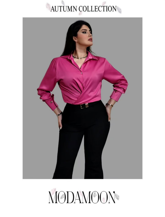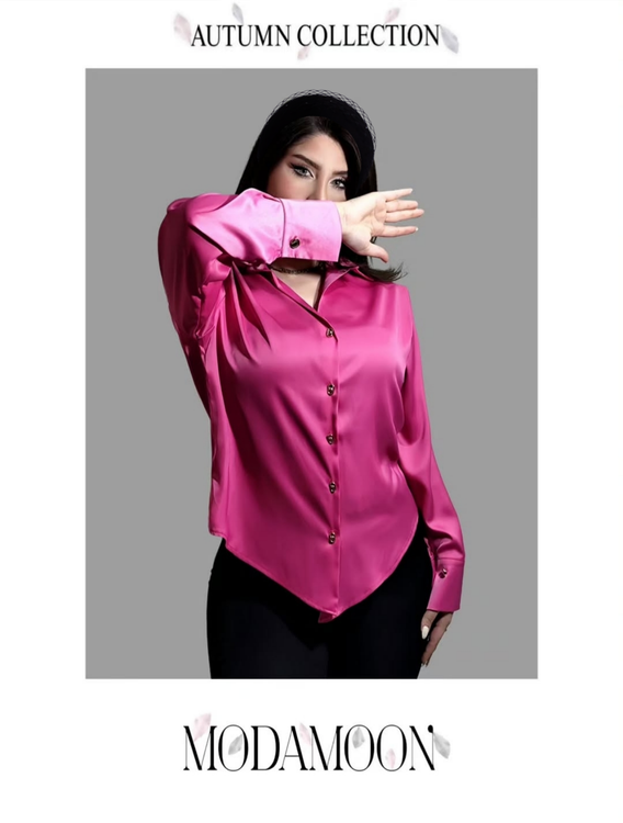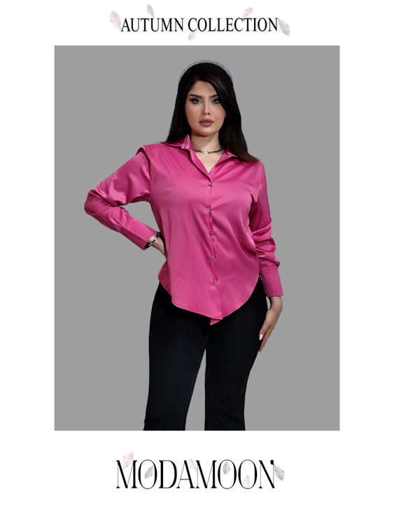 شومیز زنانه سرخابی ساتن از کالکشن پاییز MODAMOON، ترکیبی از سادگی و ظرافت است.